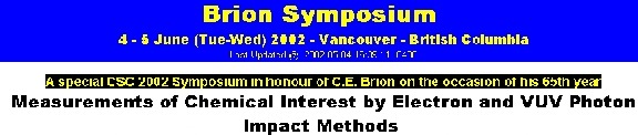 The Brion fest was held from June 3 to Jun 5, 2002 at the Chemical Society of Canada 2002 at UBC, Vancouver, Canada. It featured the CIC mdeal lecture by Chris Brion, a 2-day symposium highlighting current work in the area of electron and photon impact spectroscopy, and several parties, including the old-timers reunion (Jun 2), a gala event hosted by Chris and Pauline (Jun 3), and the symposium banquet (Jun 4).