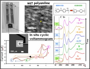 Scanning Transmission X-ray Microscope (STXM) WHAT: An apparatus to allow scanning transmission X-ray microscopy of the electrodes, electrodeposits, and electrolyte of an active electrochemical cell has been developed and its performance demonstrated. Tracking of potential induced chemical changes at a single point can be performed at 1 msec periodicity. Mapping changes as a function of applied potential along a line or over an area can also be performed. The figure shows the apparatus and sample results for spectral changes in the C 1s region associated with electrochromism of polyaniline. For more details please see the publication. OTHER INFORMATION: : Guay et al. Analytical Chemistry 77 (2005) 3479-3487 WANT FURTHER INFORMATION ? CONTACT Adam Hitchcock