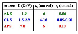 in the one-step synthesis. 3. Canadian Light Source In 1990 many scientists in Canada grouped together to form the Canadian Institute for Synchrotron Radiation (CISR), an umbrella organization dedicated to education, co-ordination, and facilitation of synchrotron light research. There are currently about 350 faculty level members, more than half of whom are directing research programs at off-shore facilities. In part through CISR initiatives, there is now formal Canadian participation in one or more beam line projects at ALS (Berkeley), APS (Argonne), and SRC (Madison). Until the start of the CLS project, Canada was virtually the only developed nation without a synchrotron light facility. In 1994 a committee of NSERC identified the need for a light source in Canada. This led to an open competition, in which groups from Eastern Canada and Western Canada competed with site specific project proposals. In 1996 a peer review committee, administered by NSERC and chaired by Dr. Alex McAuley (Victoria) re-affirmed the need for a light source and recommended that Saskatoon be the site. NSERC council accepted the recommendations of the McAuley committee in Nov 1996. In 1999, with the award of a Canada Foundation for Innovation grant for $54 M, the Canadian Light Source project was launched. The toal project budget is ovr $140 M in new funds (and over $170 M if the value of the infrastructure inherited from the SAL faiclity is included). The first scientific experiments with CLS generated synchrotron light will occur in 2004. CLS will be a full service national synchrotron light facility. The 2.9 GeV, low emittance CLS design is fully competitive third generation technology, with high current (500 mA in 2008). It will have a brightness comparable to existing third generation facilities (see Table 1). When equipped with a small gap undulator, the CLS will even be competitive with wigglers at the Advanced Photon Source. Relative to other third generation facilities the CLS design is characterized as having the highest beam energy and the highest brightness per unit accelerator length. Thus there are novel aspects of the machine design and the research program that will make CLS truly unique. The CLS team is confident that CLS can be built on time and on budget. Table 1. Comparison of the ring energy and emittance parameters (critical to brightness of the light) for ALS, CLS and APS